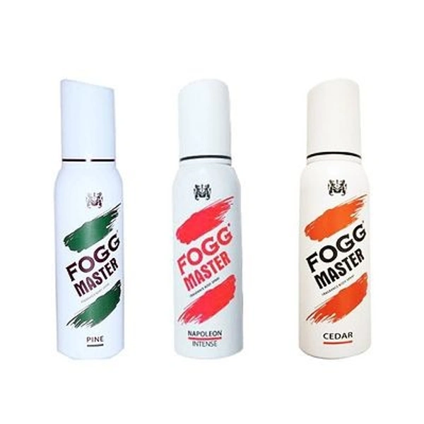 EACH COMBO PACK CONTAINS- 1 FOGG MASTER NAPOLEON INTENSE DEODORANT (120 ML) + 1 FOGG MASTER PINE DEODORANT (120 ML) + 1 FOGG MASTER CEDAR DEODORANT (120 ML)