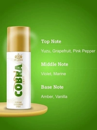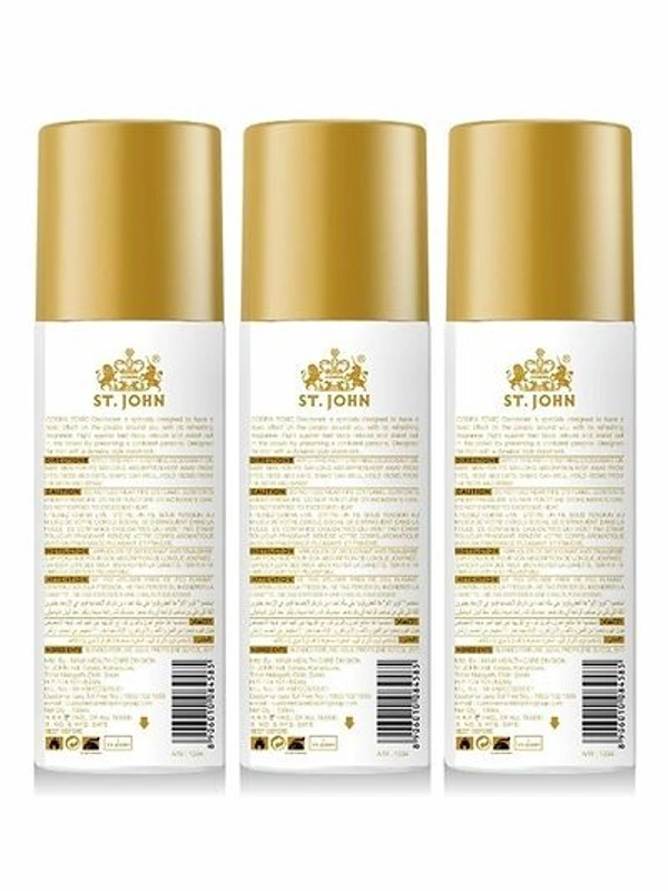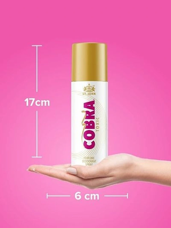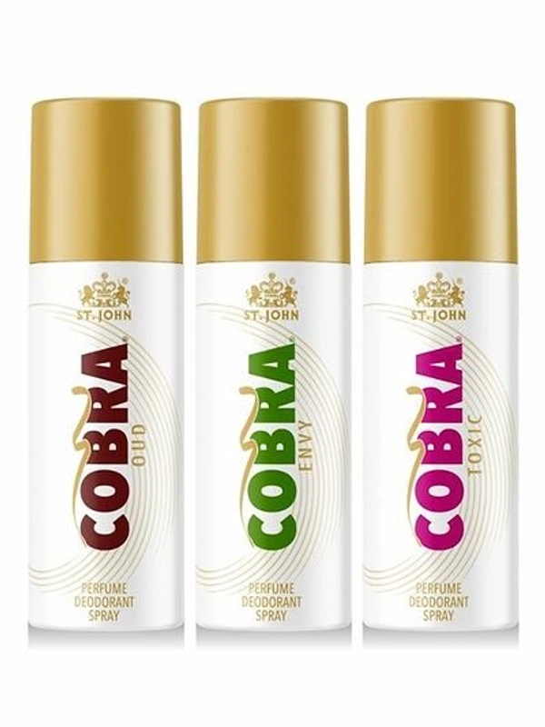 Spray once and work all day with St. John Cobra Deodorants Envy. Exquisitely formulated with the worlds best aroma, this deodorant is the best bet for your styling partner. The Cobra Deodorants Envy leaves you with a longlasting fragrance that will fight the bad body odor and will give you the confidence you need. It contains no gas and only fragrance. So, this season, make room for the Cobra! Bring freshness to the scene with St. John Cobra Deodorants Oud! Formulated with the goodness of natural oud, this deodorant is the right choice for evening outings and dinners. It has a warm sweet fragrance that is made with specially chosen woody and balsamic notes. Popular in the Arabian cities, oud is a valued perfume. And the Cobra Deodorants Oud is what you want! The best part, the fragrance lasts for a long time, hence no worries about spraying again and again! Get intoxicated with the fragrance of St. John Cobra Deodorants Toxic! Created with the fragrance of luxurious aromas, this deodo