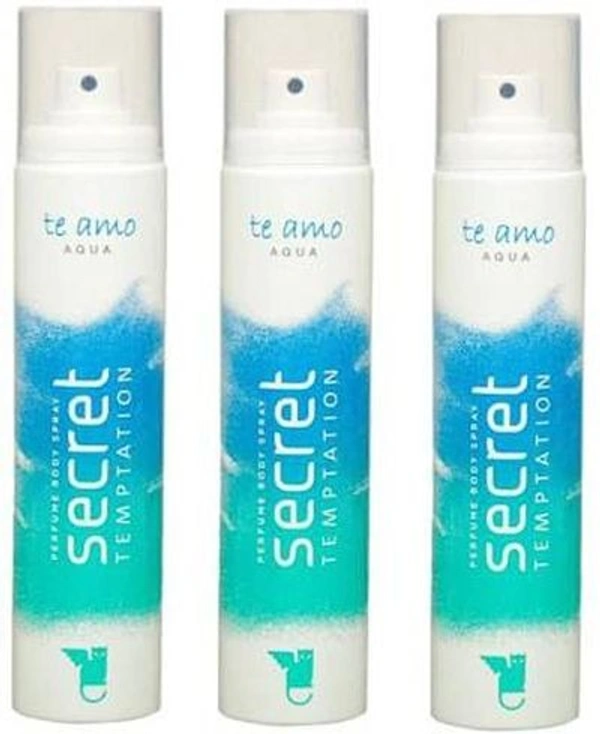 Pack of: 3 Brand: Secret Temptation Model Name: Te Amo Aqua Perfume Pack of 3 Ideal For: Women Type: Deodorant Spray Quantity: 240 ml