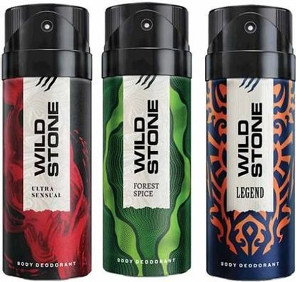 Pack of: 3 Sales Package: Deodorant Combo Brand: Wild Stone Model Name: Legend, Ultra Sensual & Forest Spice Deo Combo Ideal For: Men Type: Deodorant Spray Quantity: 450 ml Maximum Shelf Life: 36 Months Anti Perspirant: No